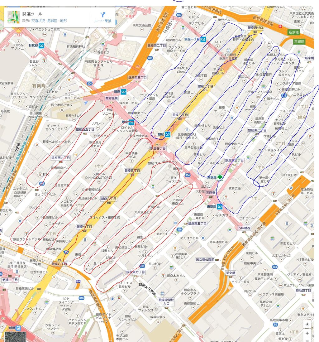 だから銀座なら銀座と狙いを絞って地図とIntelMAPを見比べて計画立てたほうが