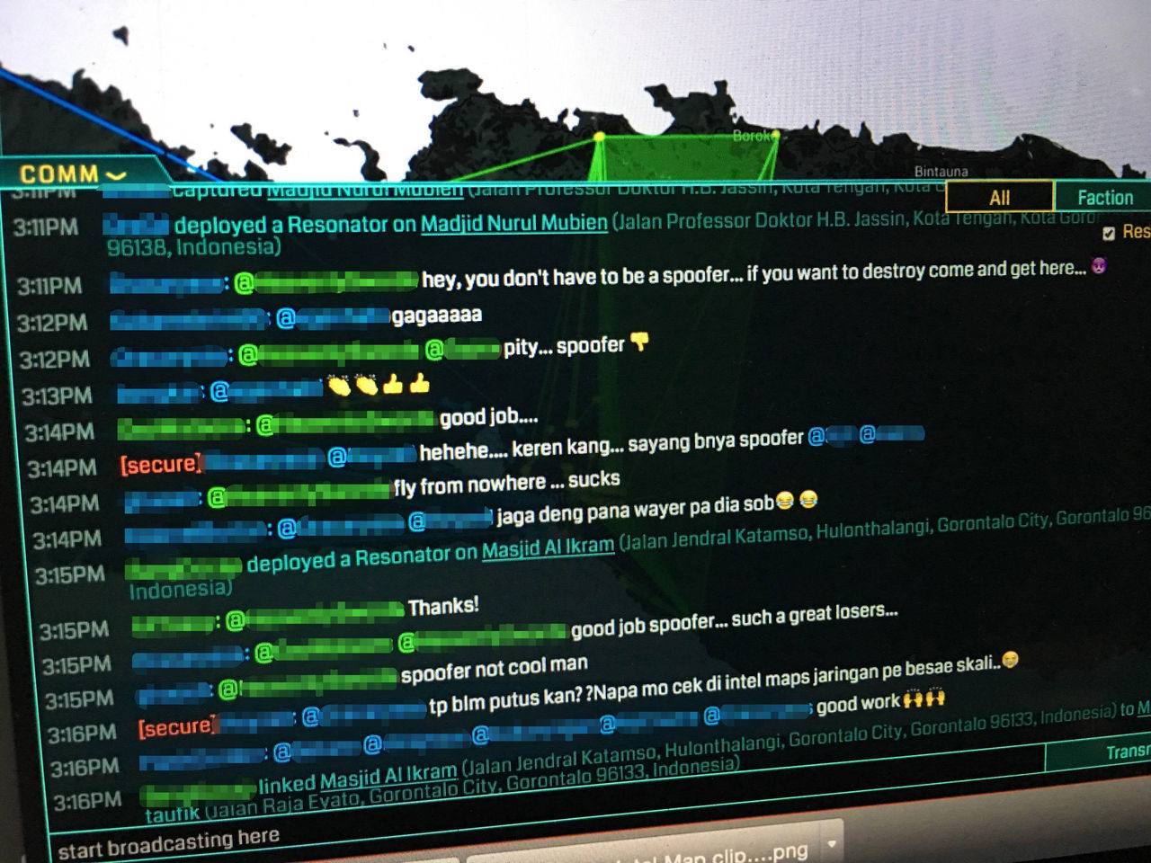 おいおいインドネシア側壊したのも緑の Spoofer かよ。